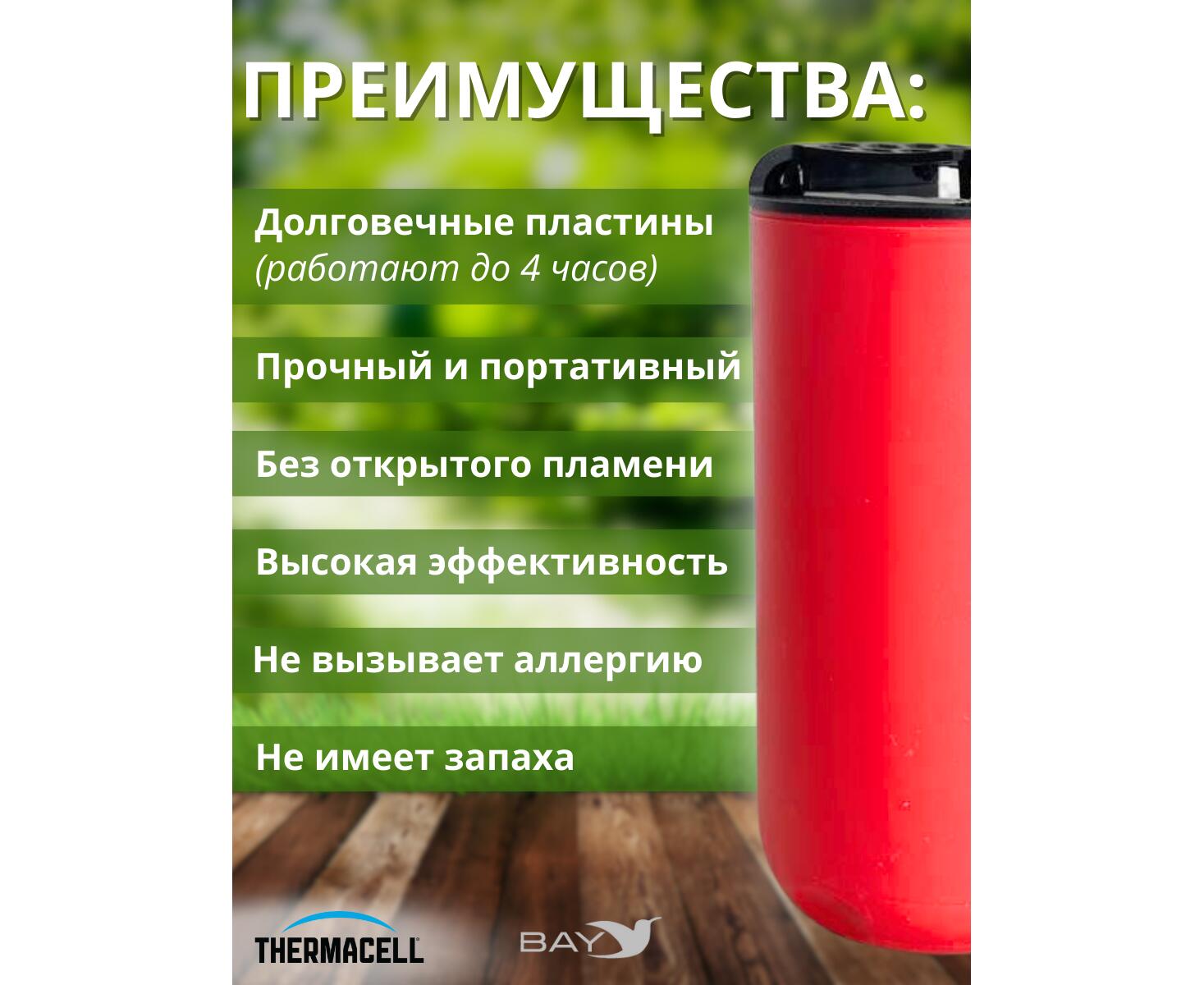Противомоскитный прибор Thermacell работает по принципу фумигации – в воздух испаряется репеллент, который отпугивает комаров на площади до 20 кв.м.