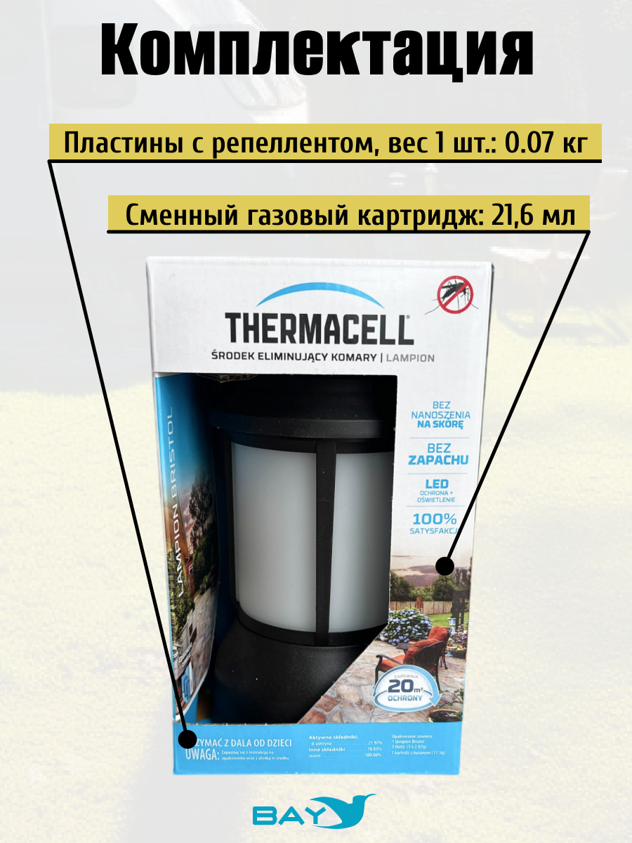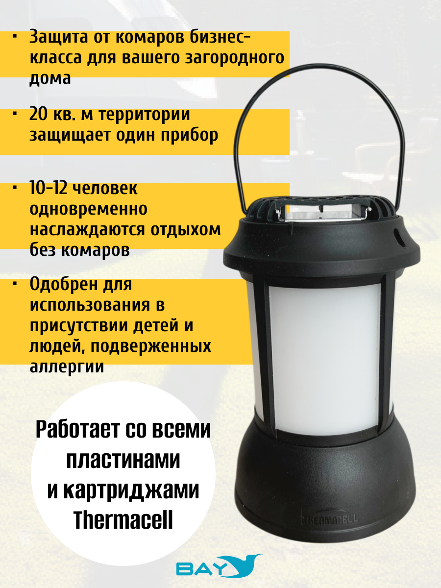 - Работает со всеми пластинами и картриджами Thermacell