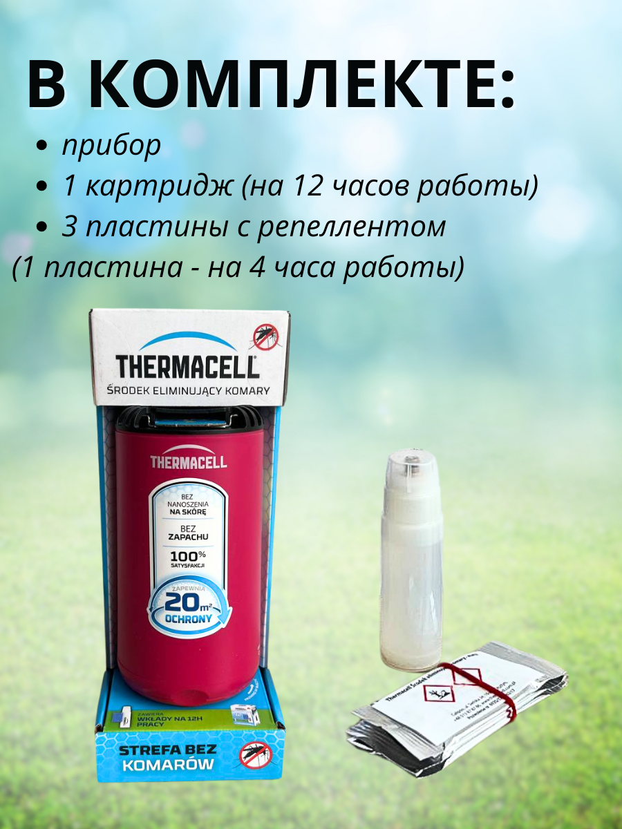 - Работает со всеми пластинами и картриджами Thermacell