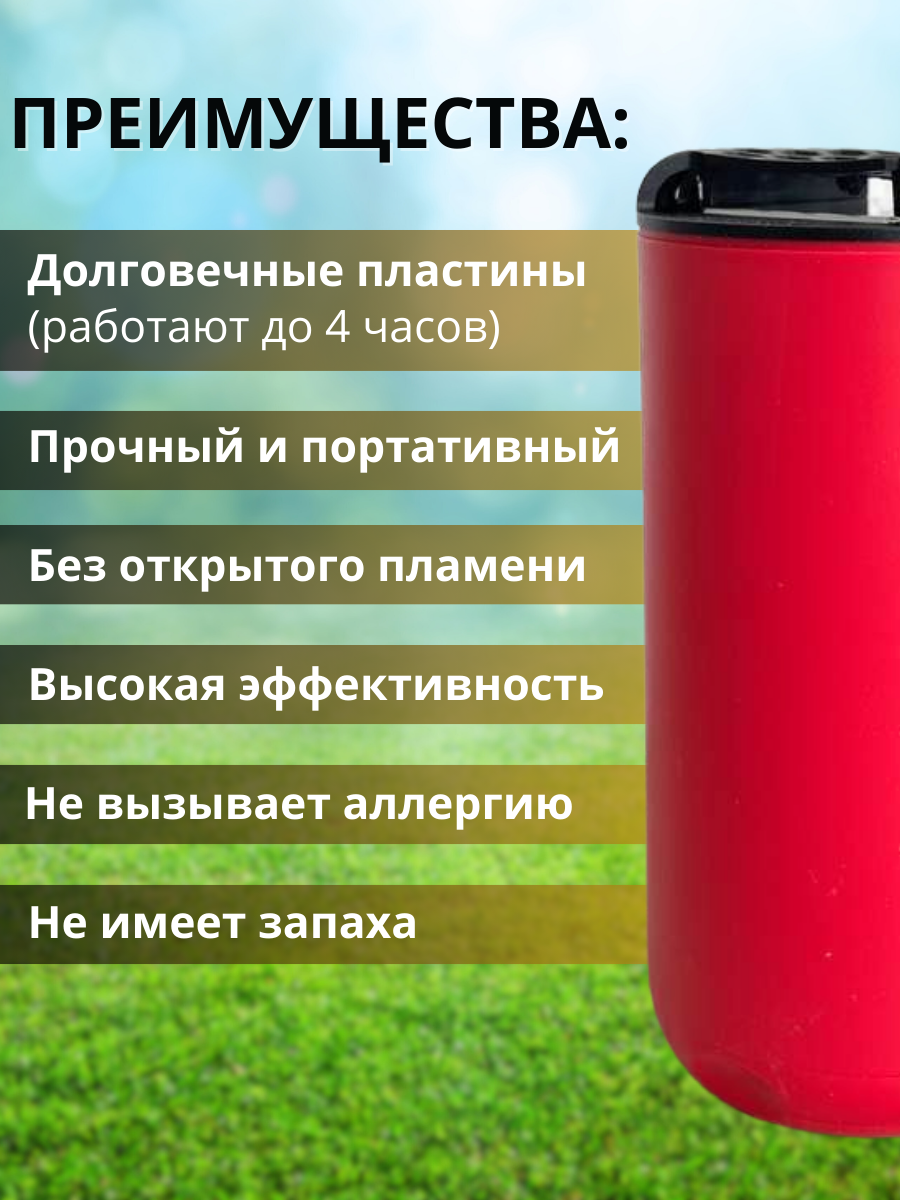 Он будет надежно отгонять назойливых комаров на веранде или пикнике, или защищать вас от укусов комаров на палубе яхты или во время патио-вечеринки. С таким прибором беспокойство от "противных" комаров отменяется!