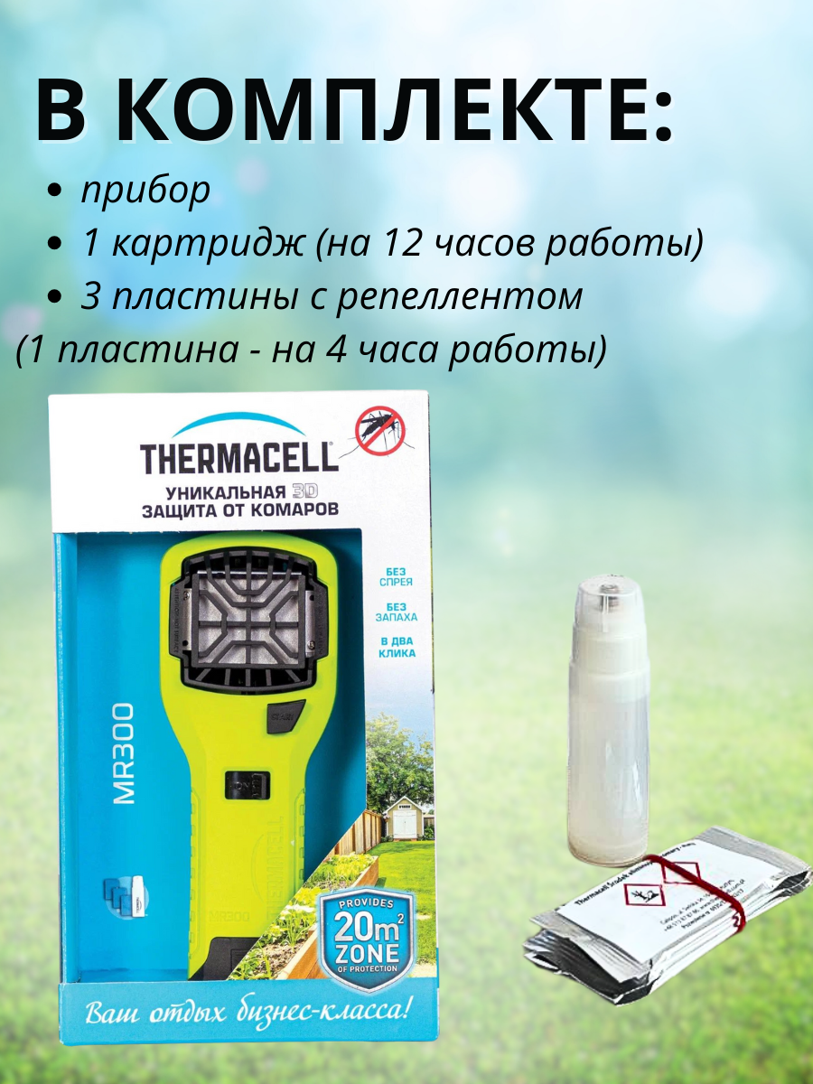 Новинка 2018 года! Прибор Thermacell MR-300 Repeller является новейшей разработкой среди выдающейся по своей эффективности линейки Thermacell. В новинке максимальное внимание уделено новому дизайну и эргономике. Патентованный уникальный состав. Разработка США. Решение защиты от комаров на открытом воздухе. Идеально подходит для рабака, охотника, грибника, дачника. Площадь защиты 20 м, радиус сферы 2 метра. Использует принцип фумигации. Прибор автономен. В комплекте с прибором идут балон с газом и 3 пластины. Готов работе сразу после распаковки. Время непрерывной работы 12 часов. Не содержит ДЭТА-компонентов (Диэтилтолуамид - опасное вещество для взрослых и детей). ThermaCELL отпугивает любых кровососущих насекомых: комаров, мошек, мокрецов, слепней и песчаных комаров. Является персональным средством защиты - всегда под рукой.