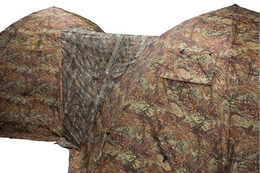 Чтобы установить переход-соединитель, поставьте две палатки УП входами друг напротив друга и пристегните переход при помощи молний. Обратите внимание, что молния находится только над одним из входов палаток УП на внешнем тенте.