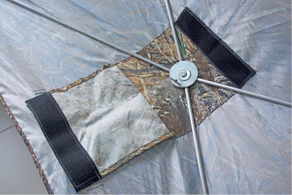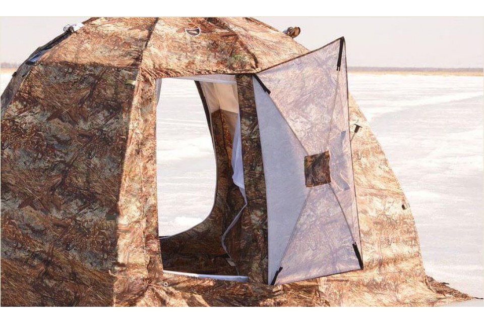 - Легко открывать и закрывать палатку без потери внутреннего тепла. Быстро и просто крепится к палатке с помощью двухсторонней липы
