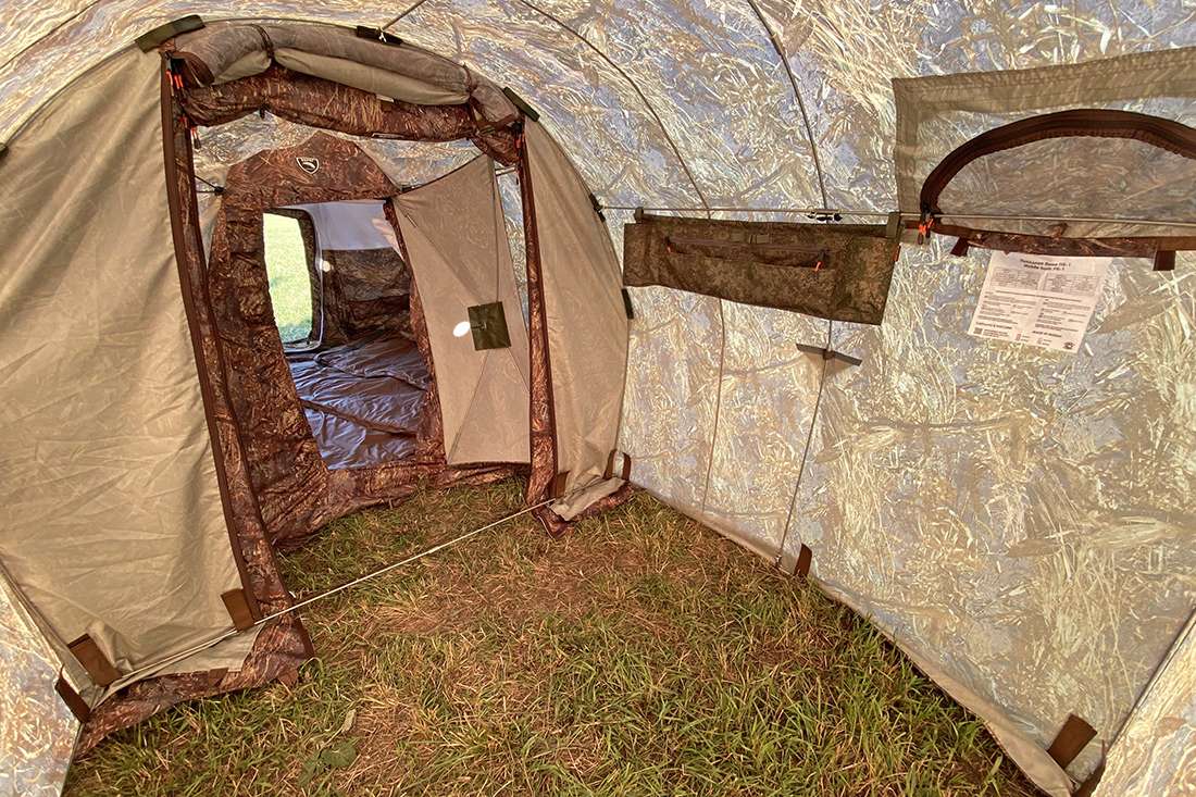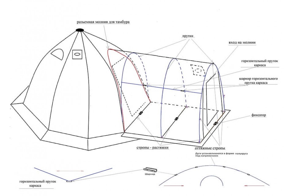 - Внутренний тент с термостойкой стенкой и съемным весенне-летним полом на молнии;