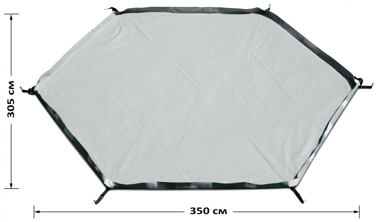 Дно гидроизоляционное Лотос 5У (320х350) предназначено для гидроизоляции пола и нижнего периметра стенок жилого пространства палаток серии "Лотос 5". Дно размером 305 х 350 см выполнено по шестигранной форме палатки в виде корыта с защитными бортиками высотой 6 см.