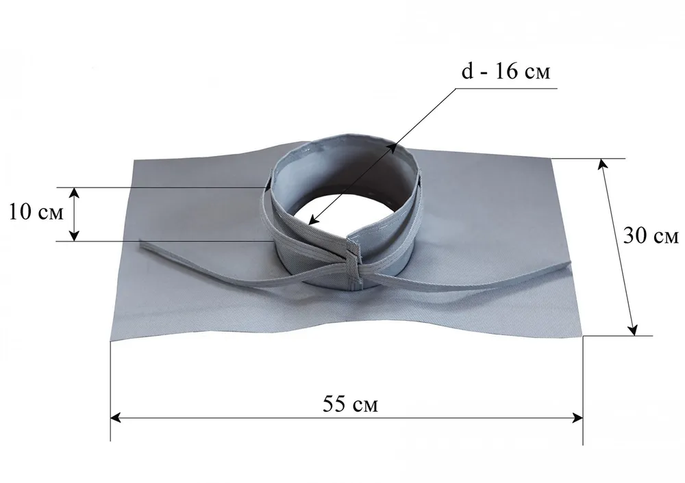 Гибкая эластичная ткань клапана с ремнями-утяжками, также изготовленными из кремнеземной ткани, позволяют устанавливать в нем и жестко фиксировать вытяжную трубу различного диаметра. Максимальный диаметр устанавливаемой трубы равен 16 см.