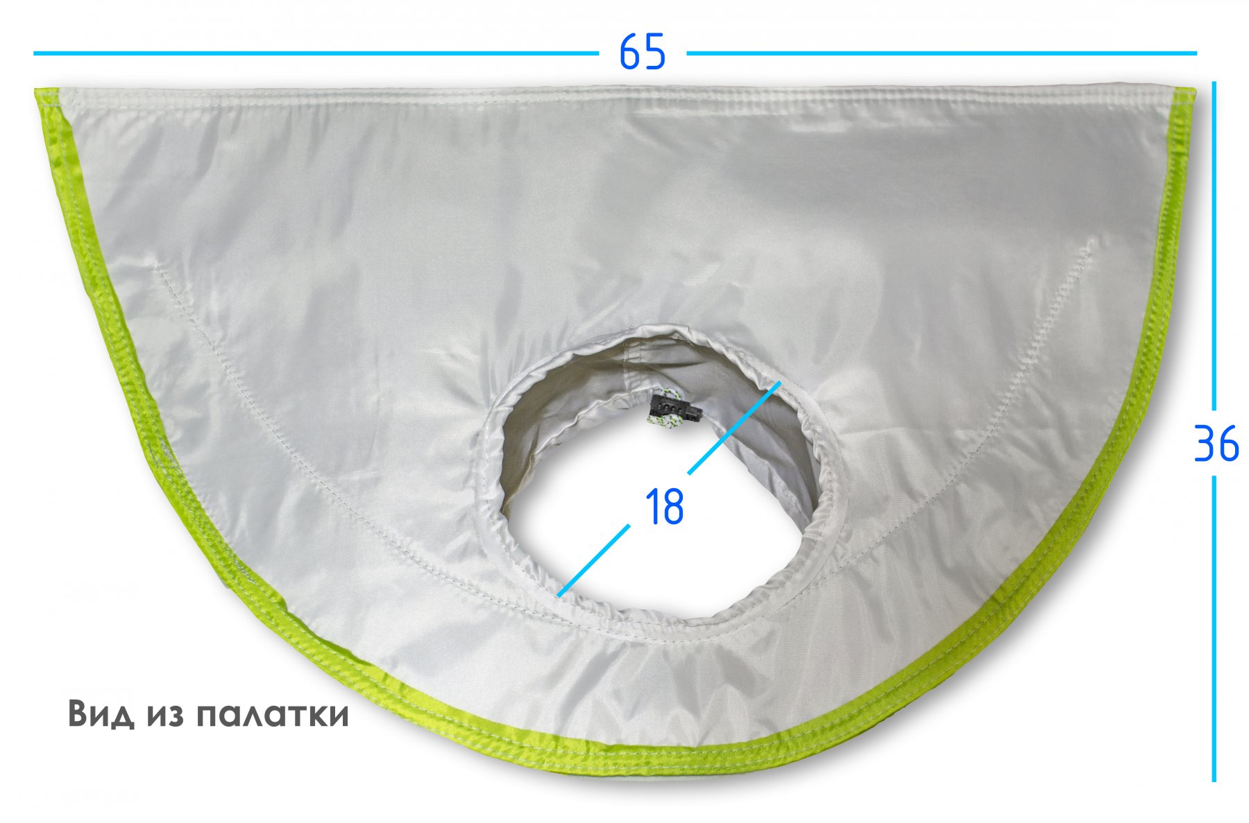Клапан изготовлен из прочной ткани Polyester Oxford 240D с трехслойной утепленной основой, в которую вшит рукав диаметром 16 см. Регулируемый утяжкой рукав позволяет надежно зафиксировать в нем вытяжную трубу и эффективно защитить место ее фиксации от попадания внешних осадков и задувания ветром. Клапан рассчитан на установку в нем вытяжной трубы с предельной температурой нагрева равной 120 °С.
