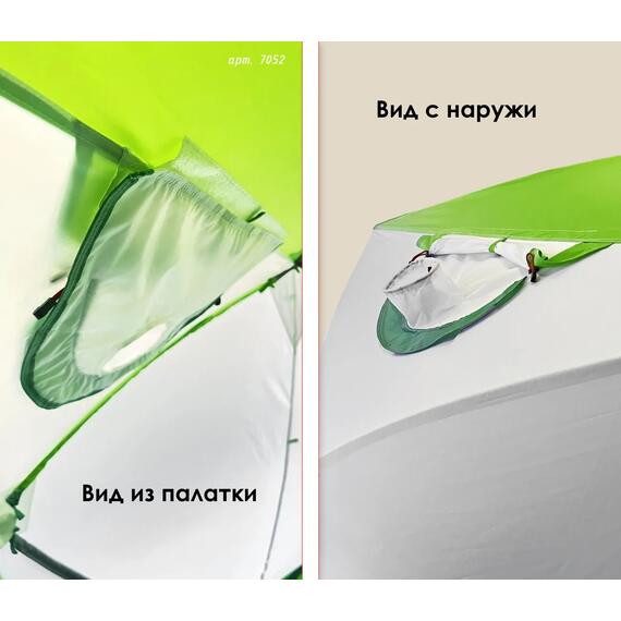 Клапан крепится с внутренней стороны палатки на "липучках" и оснащен внешней защитной планкой, которая обхватывает нижний край оконного проема палатки и крепится на "липучках" снаружи. Система крепления клапана плотно фиксирует его на тенте, имеет высокую герметичность, надежно защищая оконный проем палатки от продувания ветром и внешних осадков. Сложение палатки и дальнейшая ее эксплуатация может производиться вместе с установленным на ней клапаном.