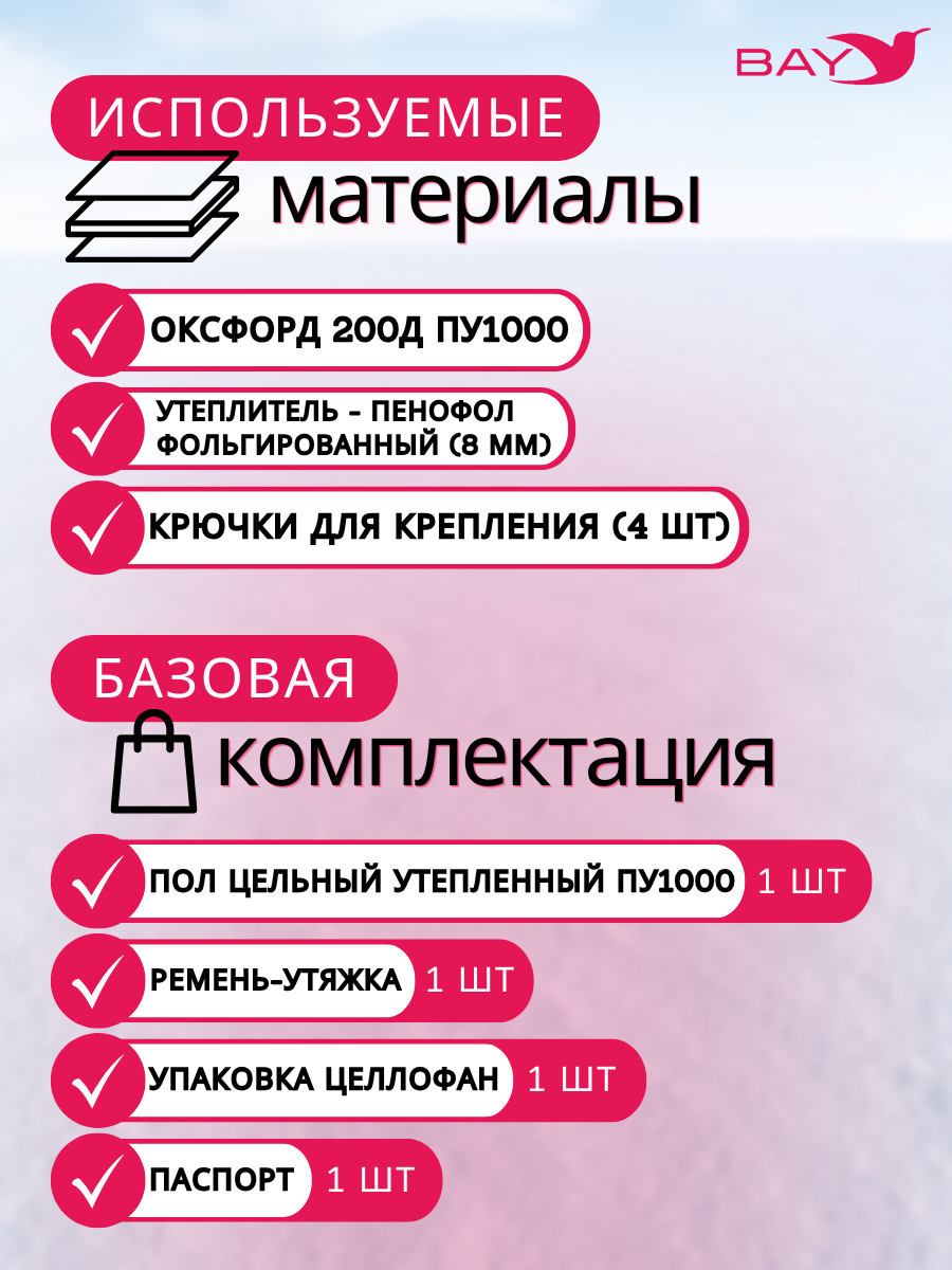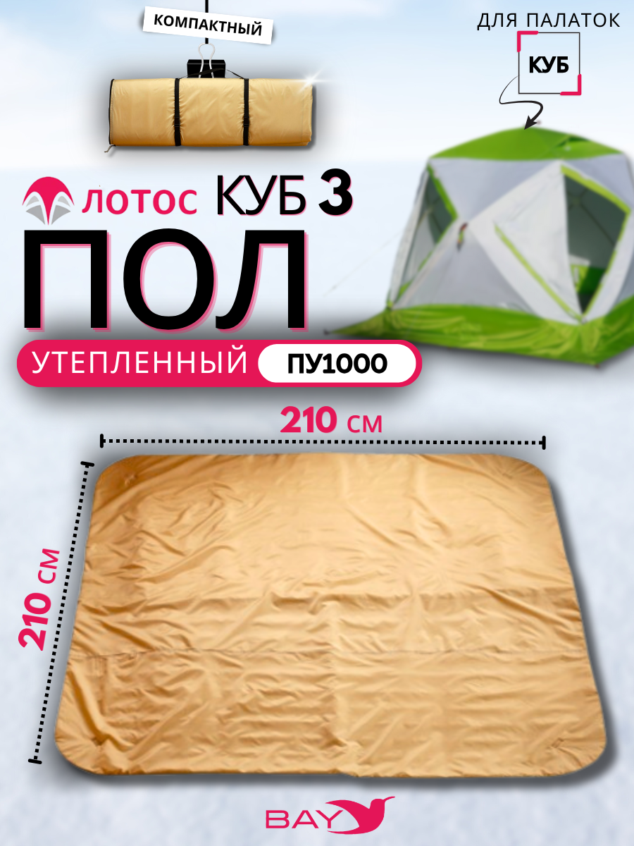 ✔Пол утепленный ЛОТОС Куб 3 (210х210) ПУ1000 имеет квадратную форму и предназначен для использования в палатках конструкции «куб» с размером дна не более 210 х 210 см.