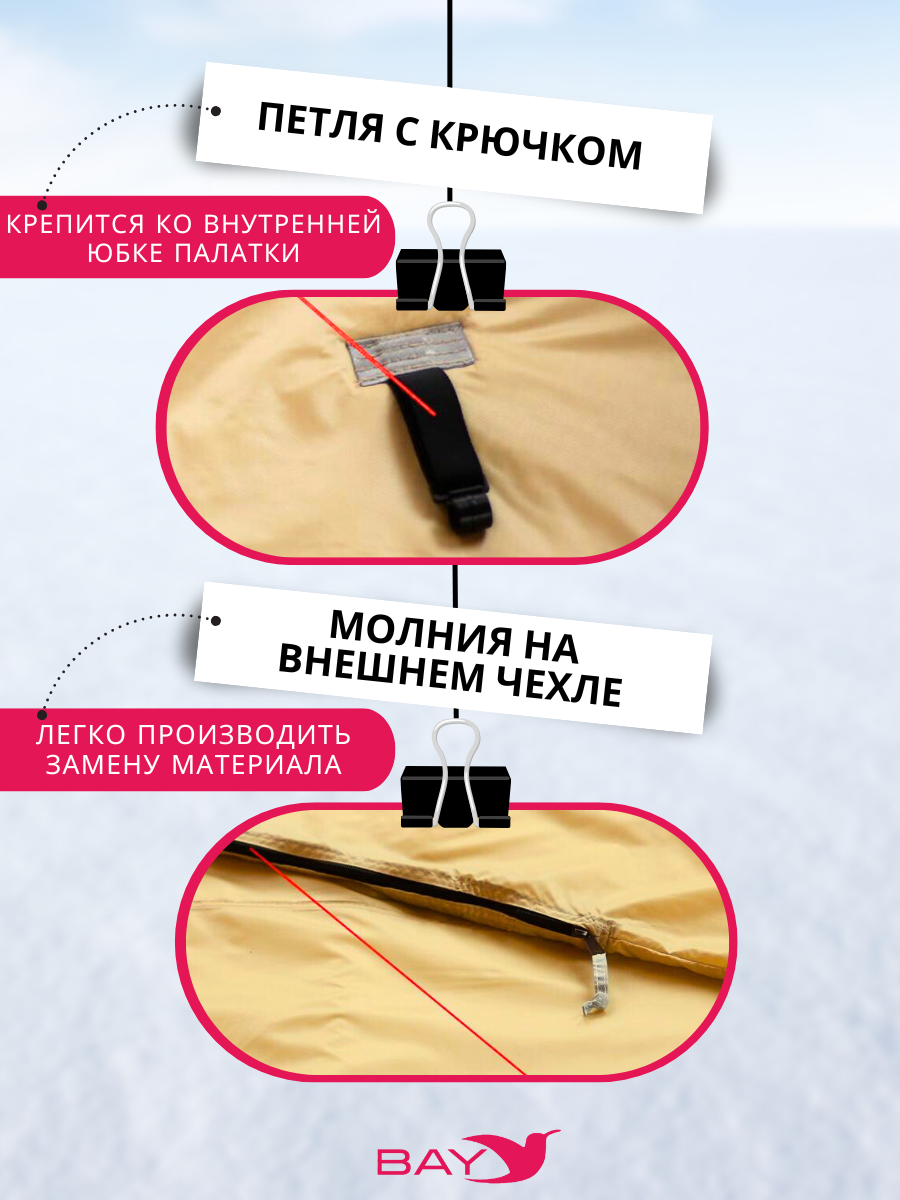 ✔Утепленный пол накрывает внутреннюю юбку палатки, предотвращая задувание ветра снизу.