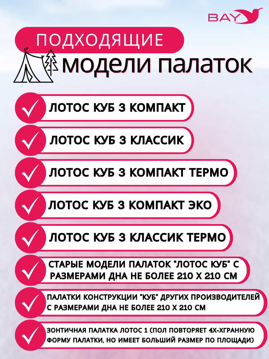 - Старые модели палаток "ЛОТОС Куб" с размерами дна не более 210 х 210 см,