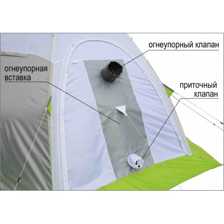 Рекомендуется устанавливать съемный утепленный потолок, который сохраняет накопленное тепло внутри палатки и защищает верхние элементы конструкции палатки от перегрева.