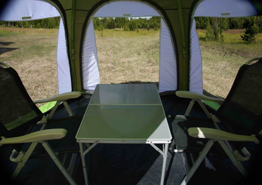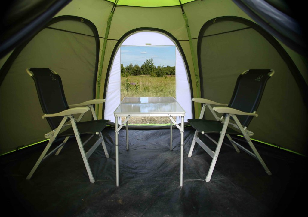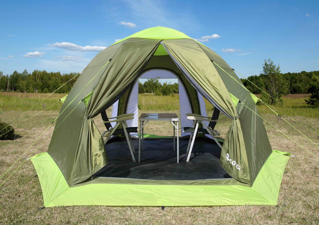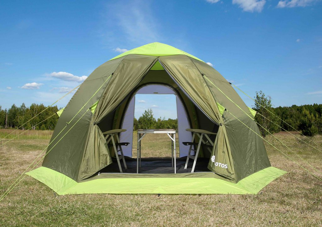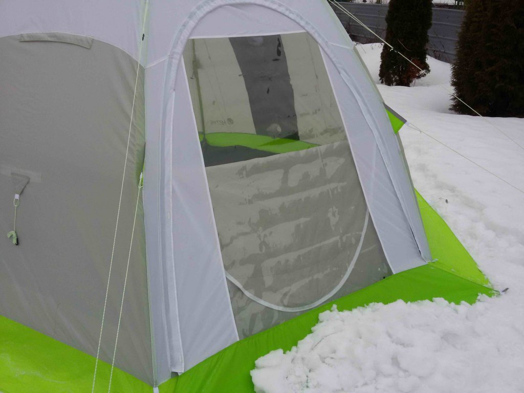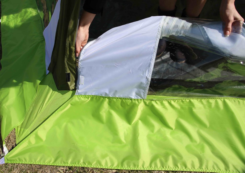 ✔Стенка герметично крепится к раскрытой палатке при помощи специальной тракторной молнии, установленной на D-образном входе палатки.