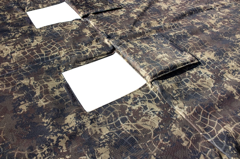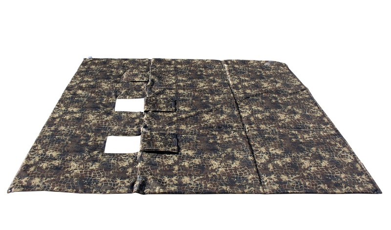 Пол утепленный для палатки Медведь КУБ 3 (оксфорд 600) с тремя отверстиями под лунки, закрывающимися клапанами на липучке, по углам люверсы для крепления. Пол складывается в квадрат, в сложенном виде фиксируется стропой.