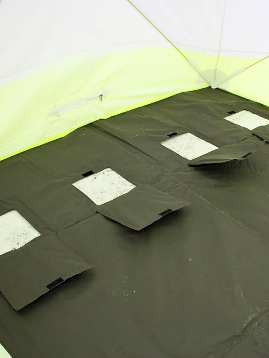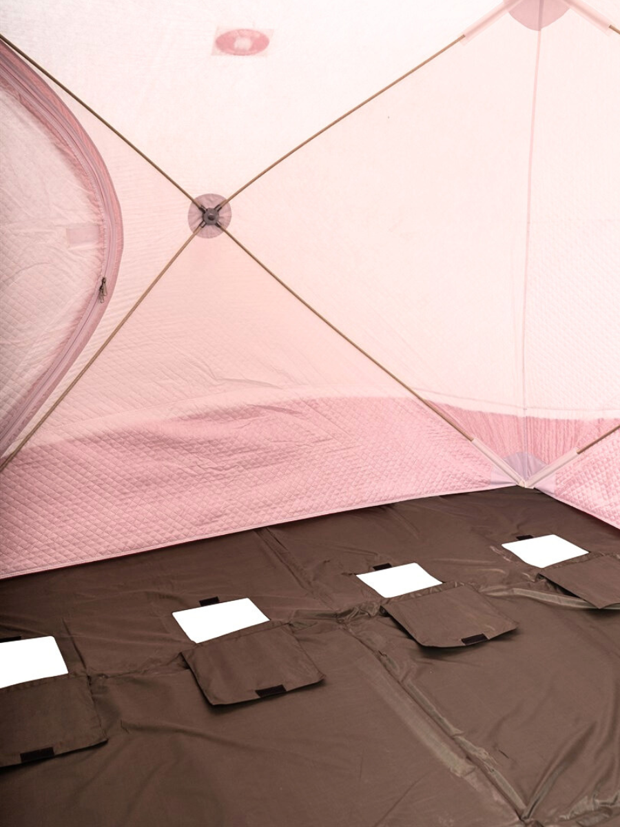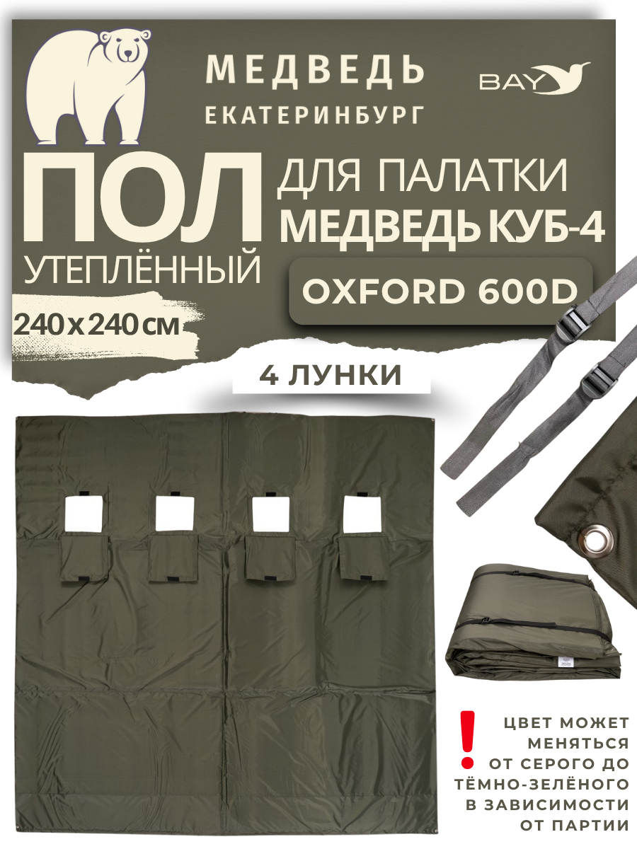 Усиленный пол "Медведь Куб-4" из плотного оксфорда 600D с изолоновым наполнителем создает надежное теплоизолирующее основание для палаток кубической формы. Специальная конструкция обеспечивает максимальный комфорт во время зимней рыбалки.
