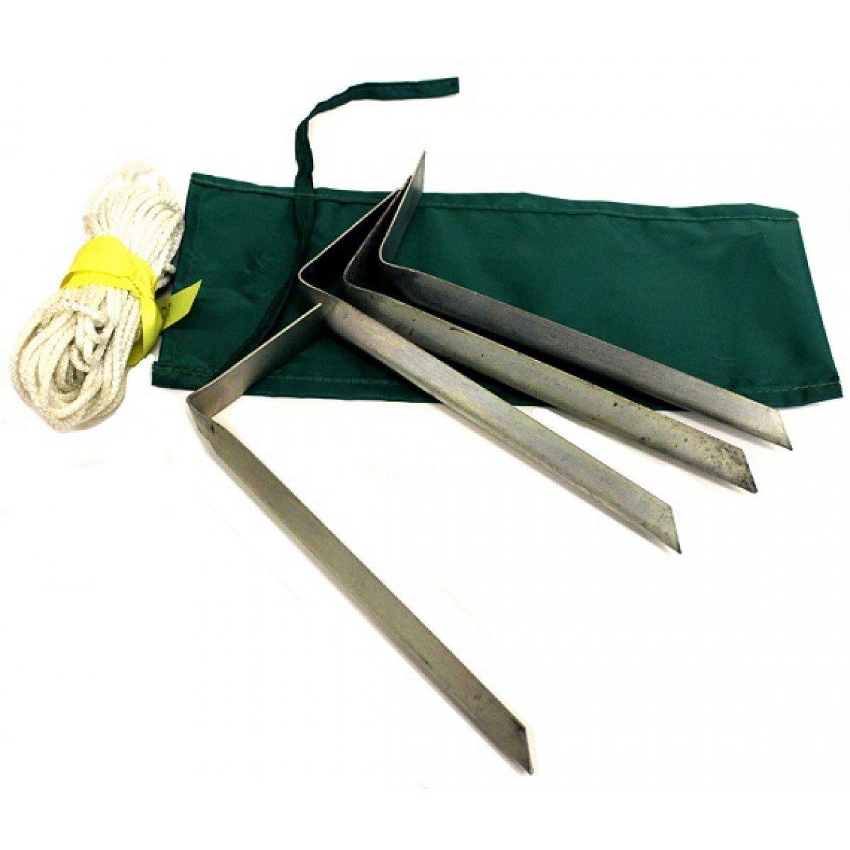 Колышки Митек комплект 4шт - комплект из четырех изделий, крепкой веревки и чехла для транспортировки. Этот замечательный набор поможет вам как при установке шатра в ветреную погоду, так и обеспечит «твердую почву под ногами» при установке палатки в походе.