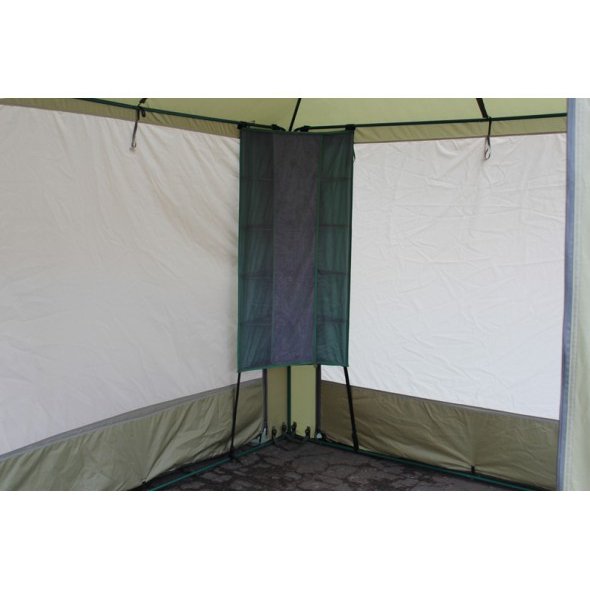 Эта полка из ткани Oxford 240D PU 2000 весьма мобильна и ее можно повесить в любой удобный угол. Крепится она прямо к каркасу шатра, что удобно и практично.