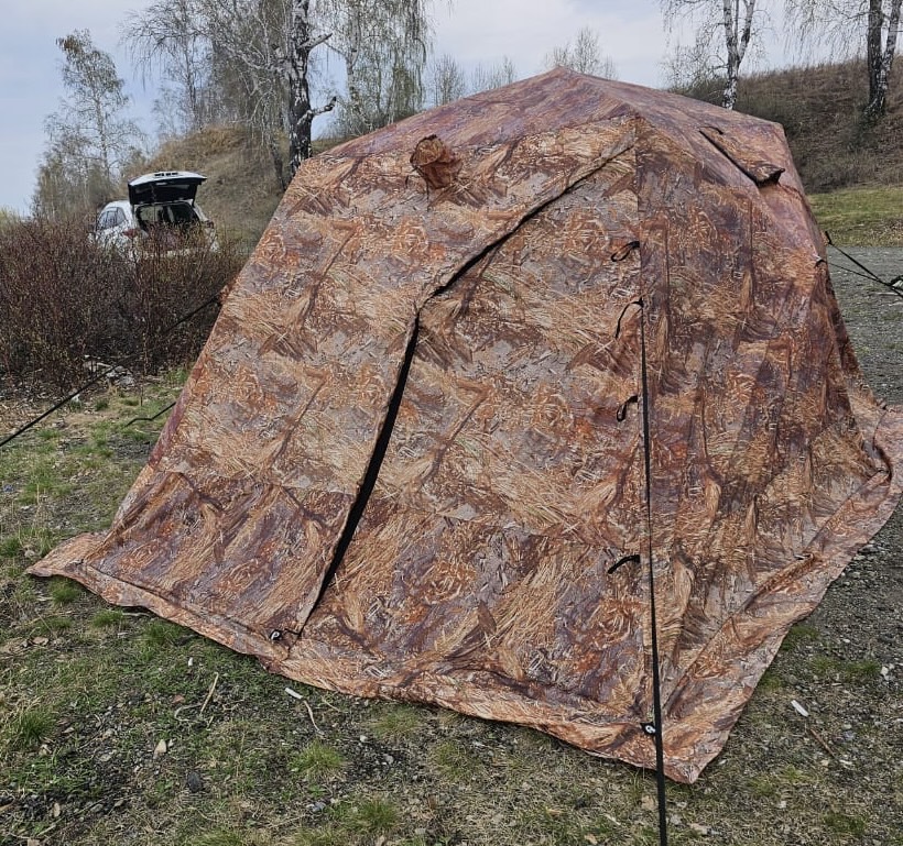 - расцветка ткани «камуфляж Камыш» делает палатку малозаметной, что не маловажно для представителей охотничьего сообщества.