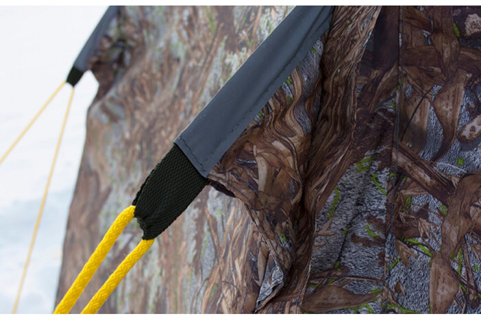 - Легко открывать и закрывать палатку без потери внутреннего тепла. Быстро и просто крепится к палатке с помощью двухсторонней липы