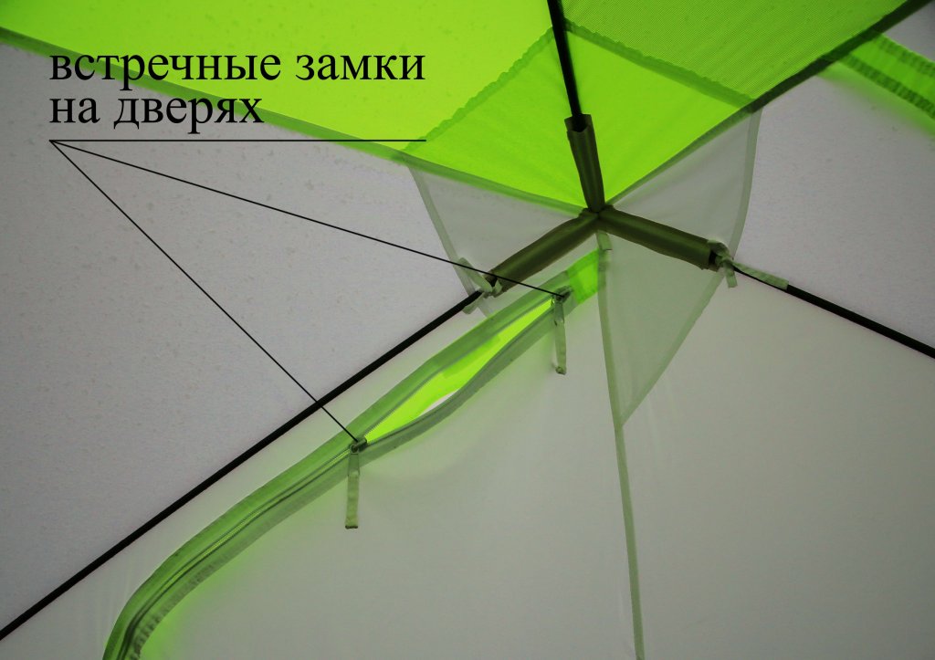 - светоотражающие элементы на стенках палатки; защитные планки на молниях дверей.