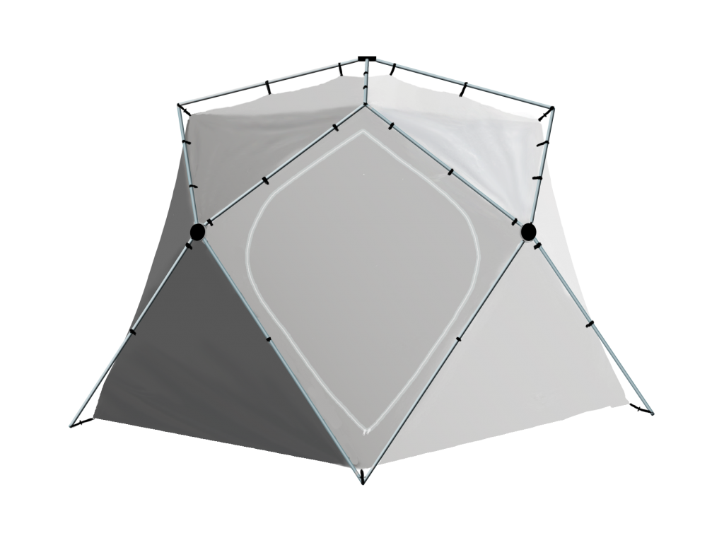 ✔Форма внутреннего тента полностью повторяет форму палатки и дублирует все необходимые элементы - вытяжные клапаны, приточный клапан, окошки, внутреннюю юбку и две двери.
