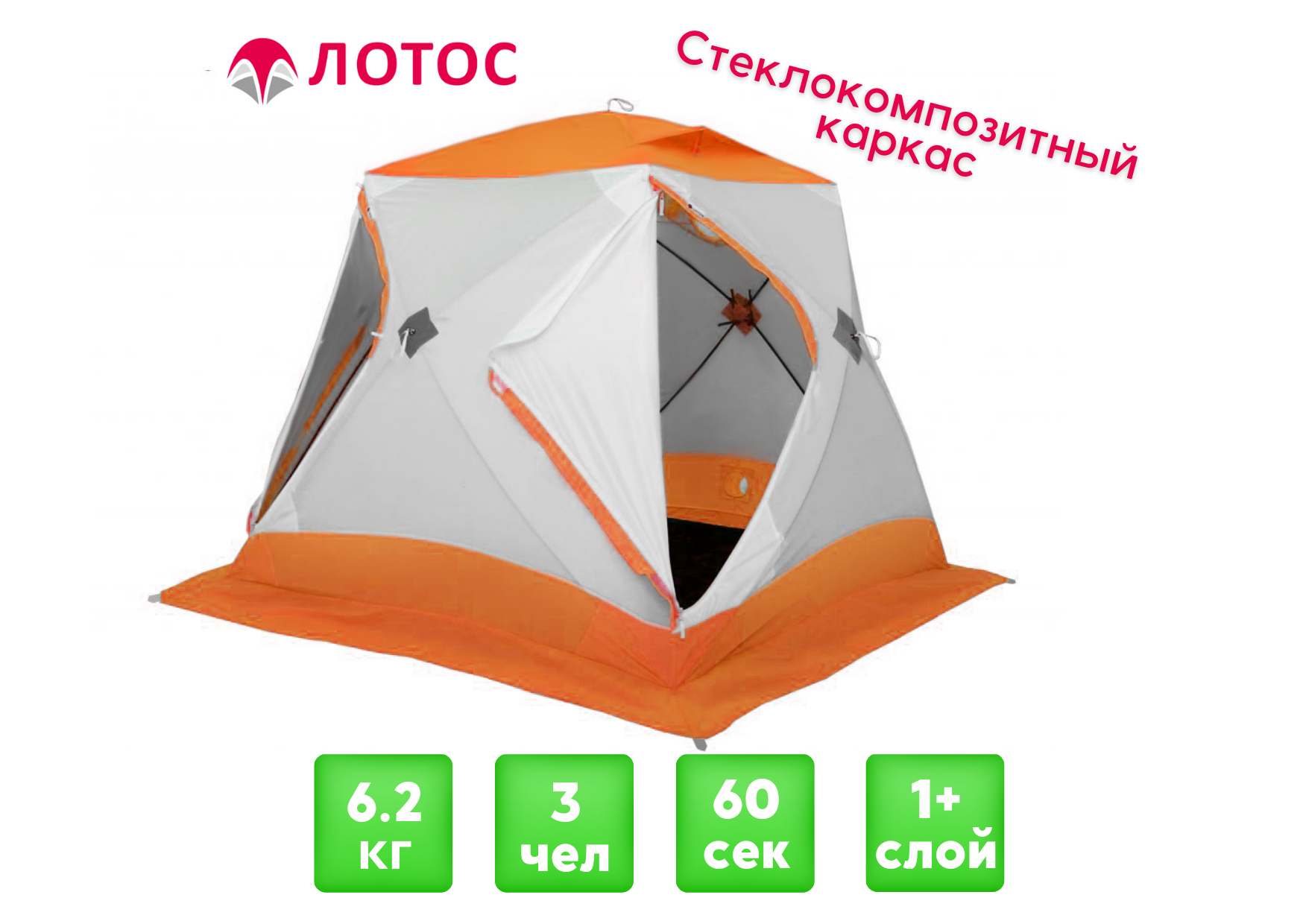 ЛОТОС Куб 3 Классик - полуавтоматическая палатка куб для зимней рыбалки.