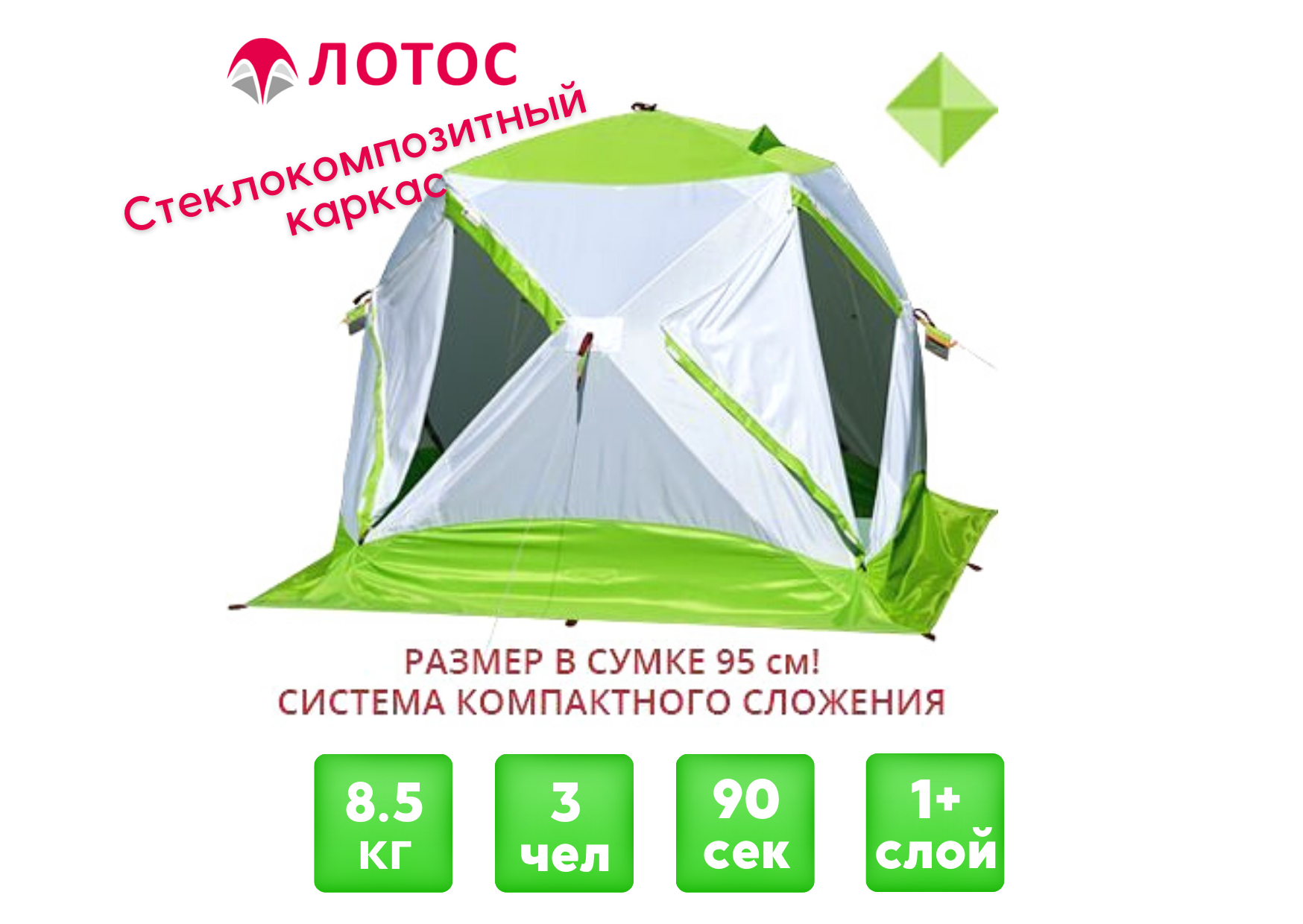Лотос Куб 3 Компакт Термо – полуавтоматическая палатка куб для зимней рыбалки не имеющая аналогов в категории зимних палаток "куб" по компактности сложения.