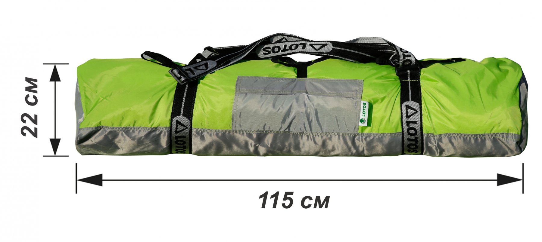 - Компрессионная сумка-рюкзак. Компрессионная система на трех ремнях-утяжках позволяет компактно сжать упакованную палатку до 22 см в диаметре.