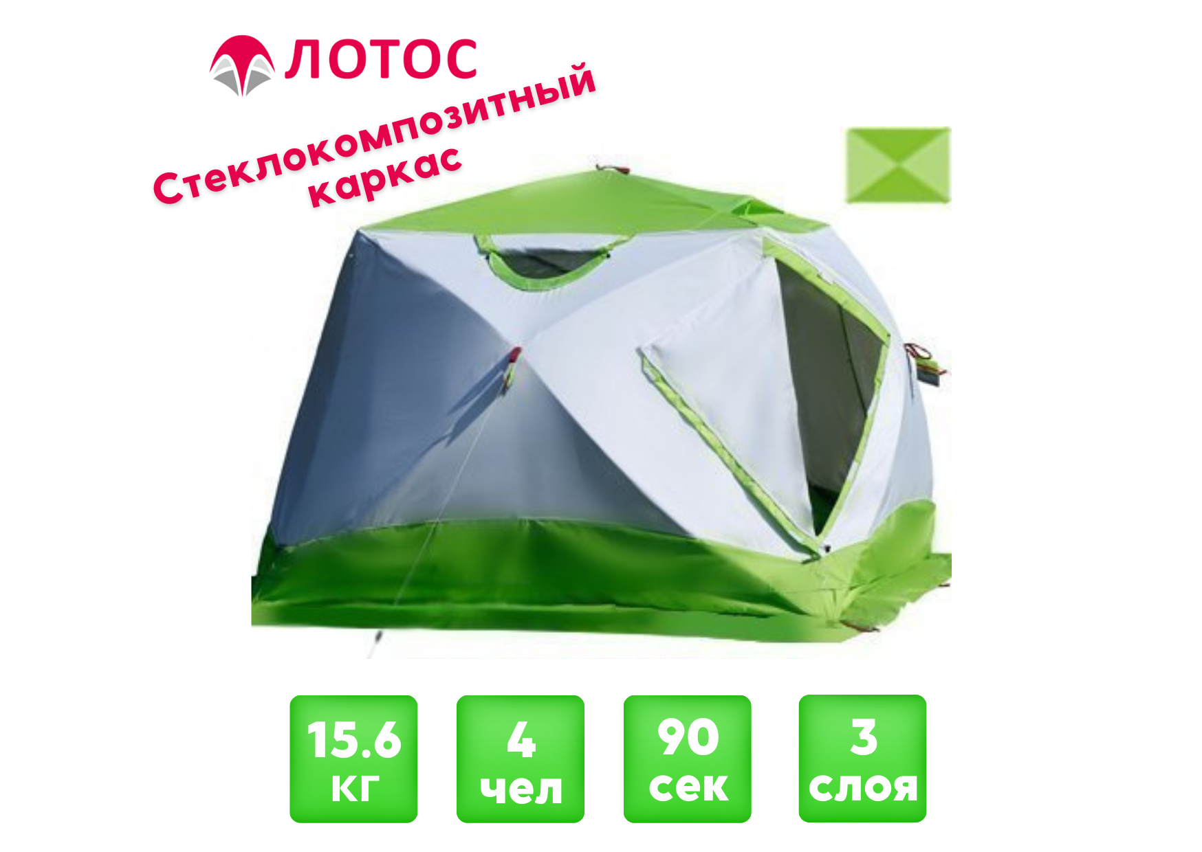 Лотос Куб 4 Классик Термо – полуавтоматическая зимняя палатка куб удлиненной формы. Трехслойная зимняя палатка с профессиональным оснащением для зимней рыбалки обеспечит пользователям комфорт в процессе эксплуатации.