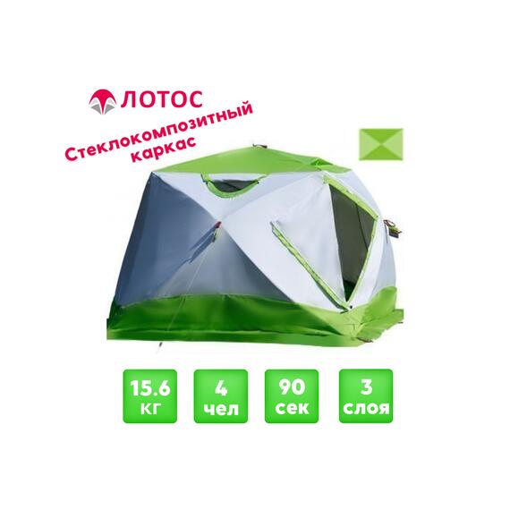 Утепленная зимняя палатка Лотос Куб 4 Классик Термо (Салатовый)