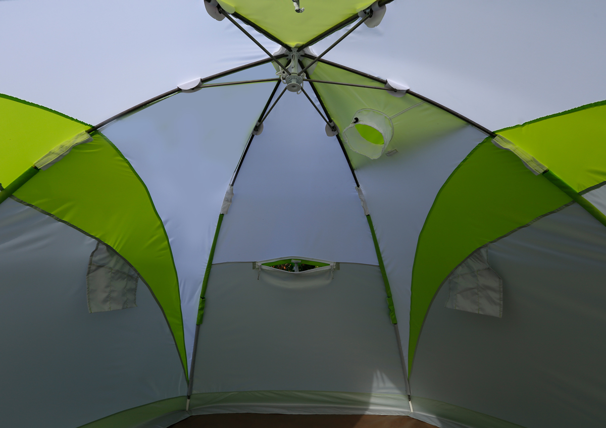 ✔Эксклюзивный запатентованный механизм зонтичного типа в совокупности с жесткими дугами, обеспечивает быстрое и эффективное раскрытие и установку палатки. Опытному пользователю потребуется не более 30 секунд на раскрытие и на складывание палатки в сумку.