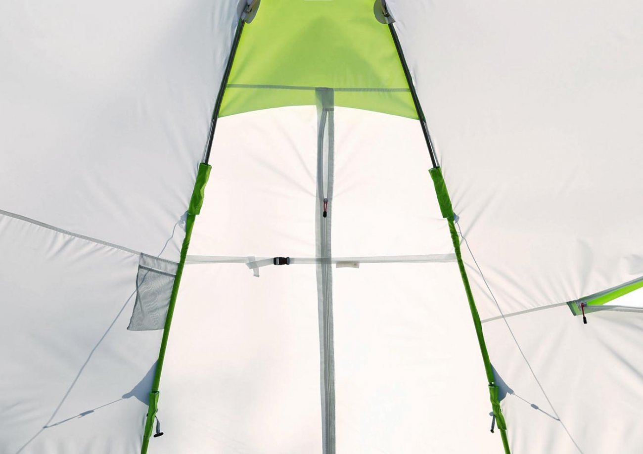 ✔Оснащена широкой двустворчатой дверью с тремя замками, позволяющими открывать каждую створку по отдельности, а также раскрывать дверь во всю стенку палатки, образуя проход шириной 1,7 метра.