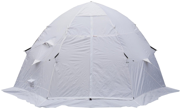 Палатка оснащена широким Т-образным входом, выполненным в виде двухстворчатой двери с тремя замками, позволяющими открывать каждую створку по отдельности, а также раскрывать дверь во всю стенку палатки, образуя проход шириной 1,5 метра.