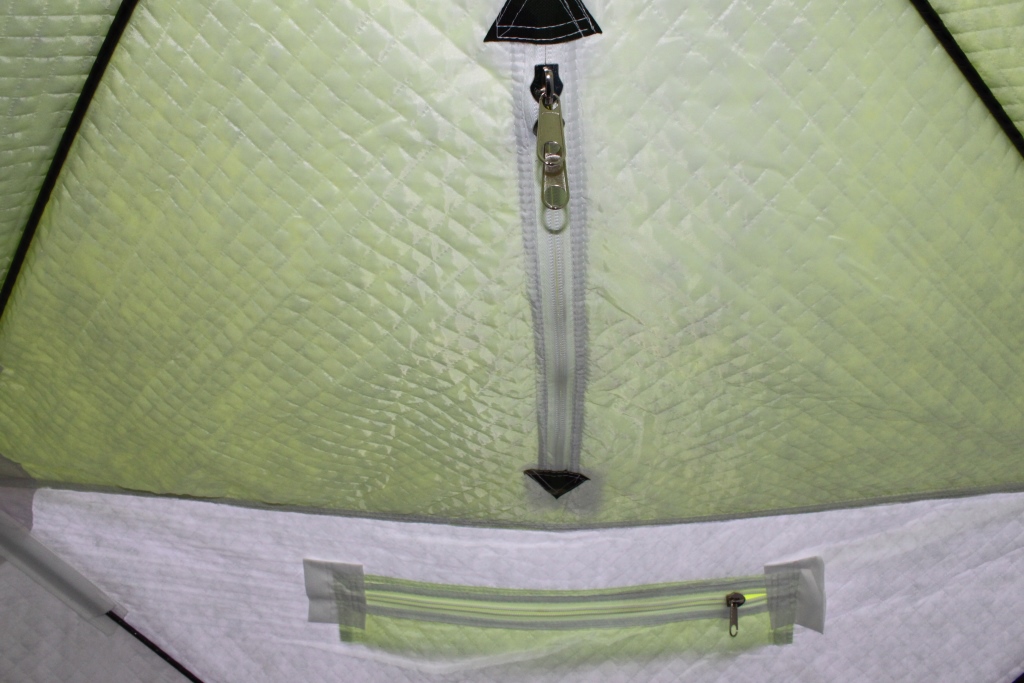Материал тента: внешний слой Оксфорд 210d, внутренний слой - термостежка (таффета 190Т + синтепон). Верх палатки - вставка из дышащей ткани Грета