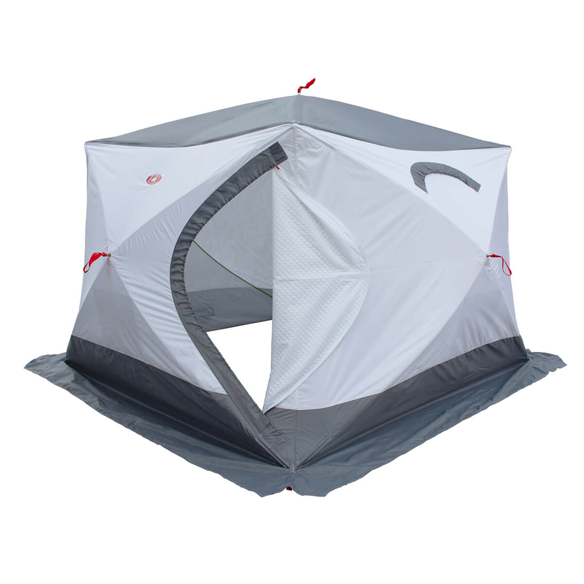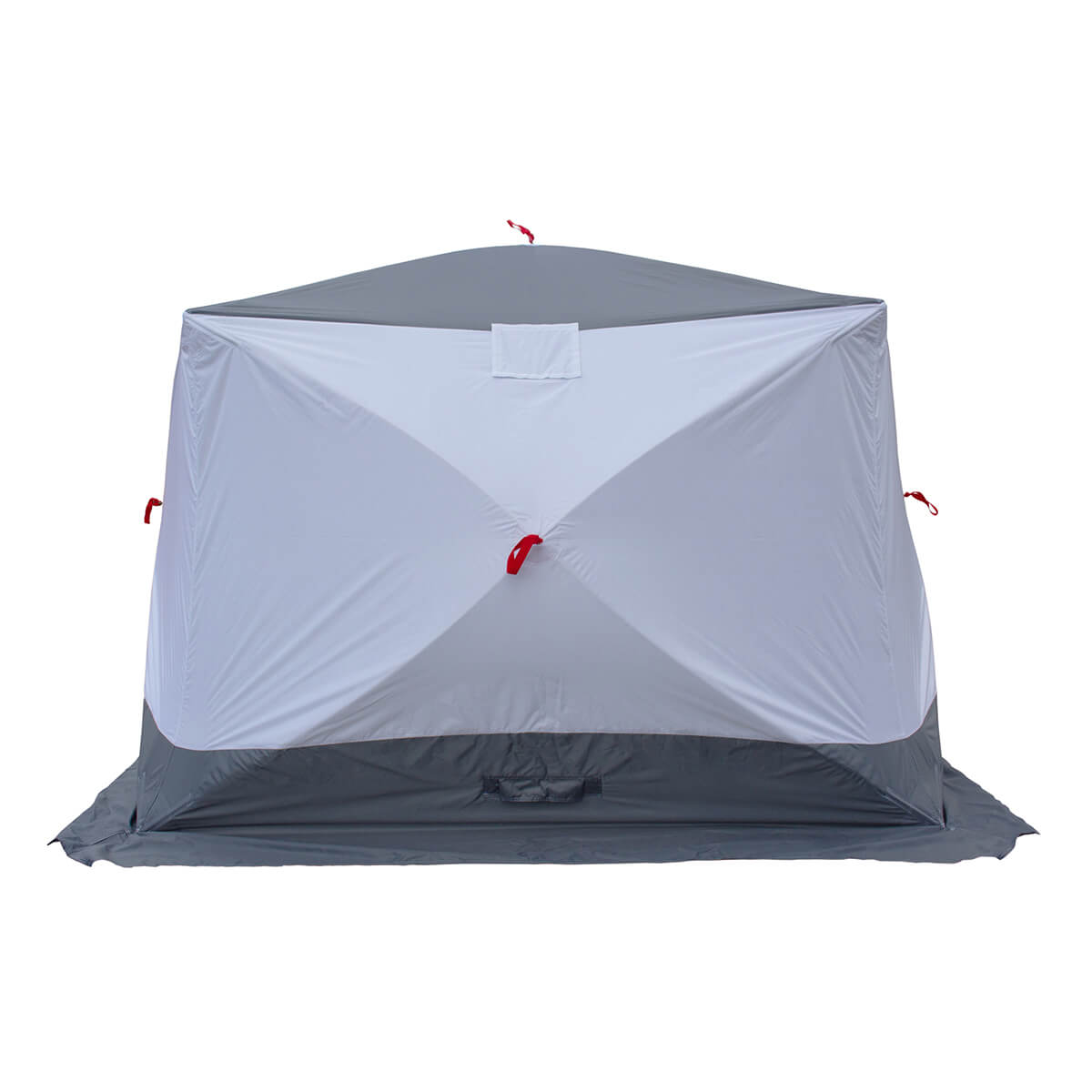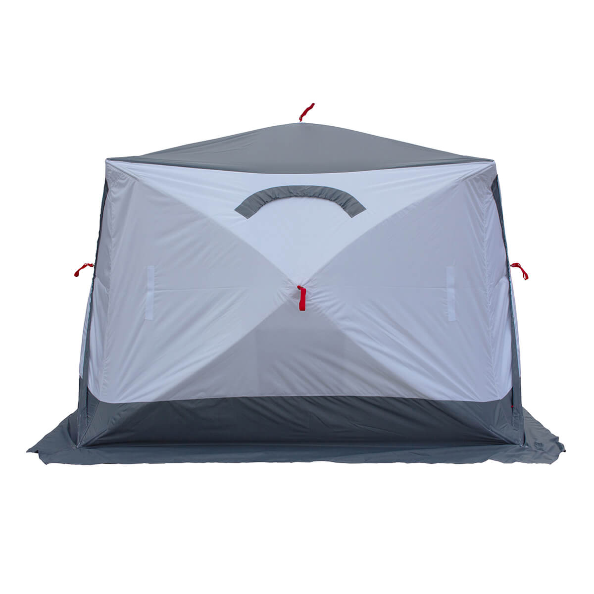 Палатка оснащена вентиляционными окнами, которые обеспечивают циркуляцию воздуха и снижают образование конденсата. Предусмотрены усиленные юбки по периметру для защиты от задувания ветра и снега, а также надёжные крепления для фиксации на льду.