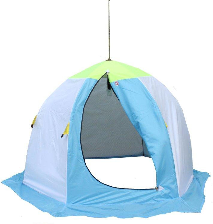 Модель снабжена ветроснегозащитной юбкой, окном для вентиляции и внутренним карманом. К палатке прилагается чехол для переноски и хранения.