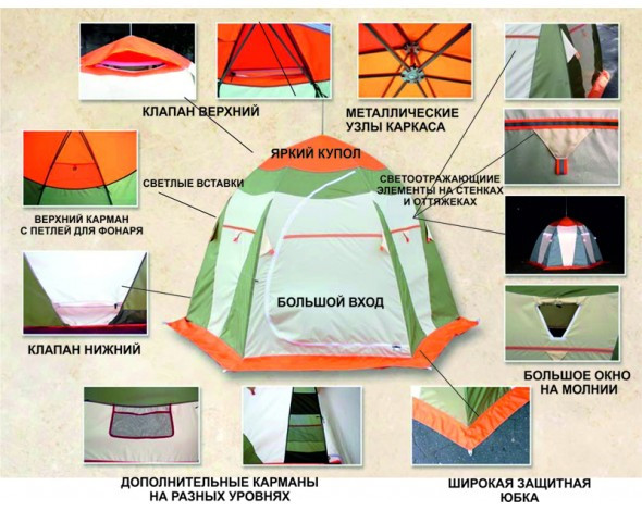 Зимняя палатка Митек Нельма-3 (230 х 265 х 162) - Если вы хотите комфортно рыбачить в мороз и непогоду, советуем купить палатку Нельма-3 от Митек. Наша красавица с оранжевым куполом, устойчивым каркасом и продуманными деталями подходит для зимней рыбалки лучше других палаток линейки Нельма.