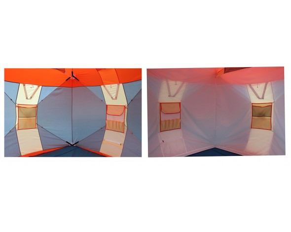 Кроме этого, палатка Нельма Куб-2 Люкс обладает всеми характеристиками палаток для зимней рыбалки Нельма-Куб: большим объемом, быстроразборным дюралевым каркасом (палатку можно установить в одиночку), непродуваемой тканью тента, 12 петель для надежного крепления палатки на льду, ярким куполом и светоотражающими полосками, съемными карманами, клапанами вентиляции, большой дверью, открывающейся как полностью, так и наполовину, 2 окнами. В нашей палатке все продумано для мелочей. Например, клапаны для вентиляции снаружи имеют жесткие опорные крепления, которые не дают козырьку закрыться.Цена палатки довольно высока, но она полностью обоснована затратами на разработку и воплощение в жизнь идеи надежной, комфортной и безопасной палатки Нельма Куб-2 Люкс.