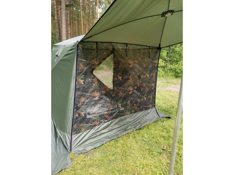 - Москитная сетка на молнии на входе, шторка из москитной сетки на откидной стенке.