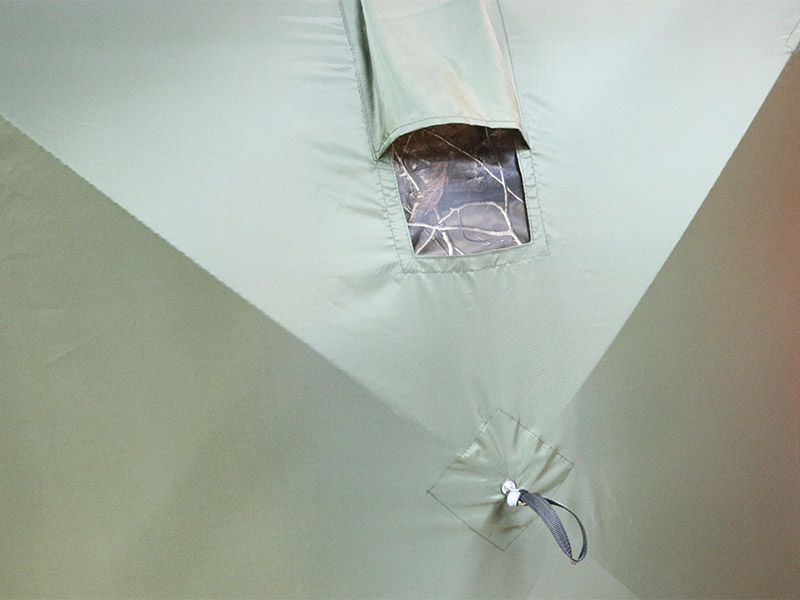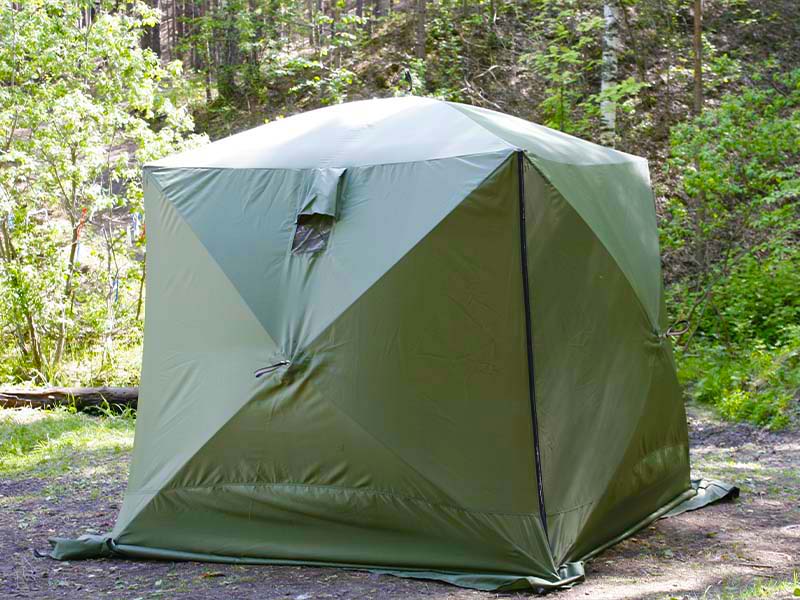 **Обратите внимание, что тент не обладает дышащими свойствами. Для циркуляции воздуха внутри палатки рекомендуем использовать форточки и бегунок на входной двери. Также необходимо укрепить палатку растяжками, независимо от наличия ветра.