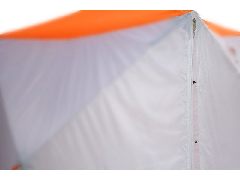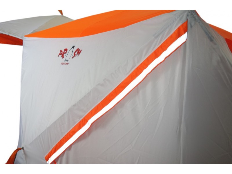 Призма Шелтерс Премиум (2-сл.) имеет увеличенные размеры. Теперь в ней могут свободно разместиться четыре человека и комфортно рыбачить как днем, так и ночью! Для удобства сделано два входа. Входы сделаны не по диагонали, как принято на всех импортных аналогах, а напротив друг друга, что позволило оптимизировать внутреннее пространство, открывающая сторона находится напротив дверей. Входы выполнены в угловом варианте и снабжены застежкой – липучкой. Так же входы снабжены специальной зимней молнией, которая снаружи имеет защитную планку, предотвращающую от замерзания. Палатка выполнена в светлых тонах и имеет яркую крышу и пороги, а так же светоотражающие элементы по периметру, что позволяет увидеть палатку в ночное время.