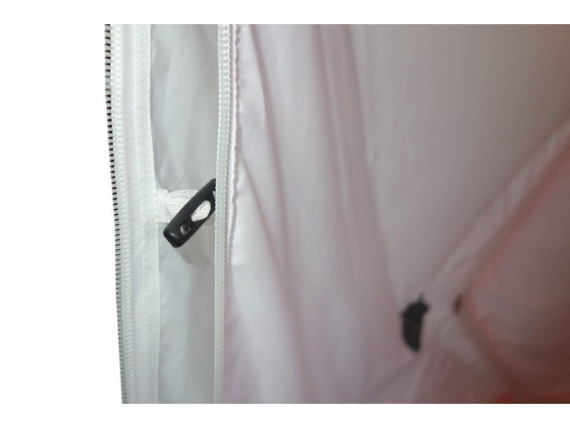 Обратите внимание, что укрытие не обладает дышащими свойствами. Для циркуляции воздуха внутри палатки рекомендуем использовать форточки или бегунок на входной двери. Также мы рекомендуем укрепить данную палатку растяжками, независимо от наличия ветра.