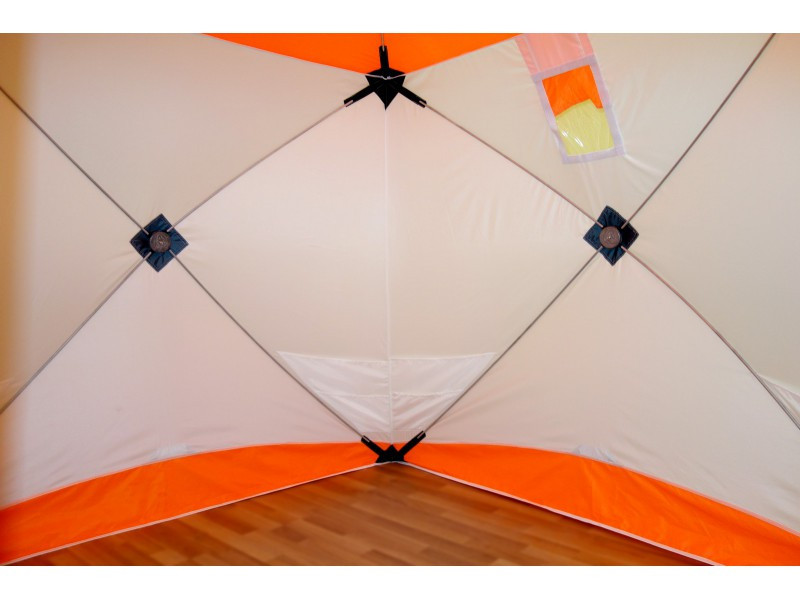 ✔Внутренне пространство тоже стало намного удобнее. Сверху в тенте установлены 2 кармана-сетки для легких вещей, в дополнение к трем сдвоенным карманам по периметру, 2 форточки, выполненных с применением прозрачной морозостойкой ПВХ-пленки (полностью съёмные). Тент выполнен из ткани Оксфорд 240, которая выдерживает столб воды не менее 2000 мл.