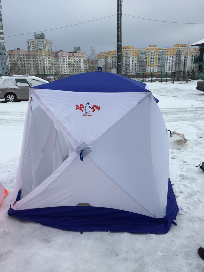 ✔В палатке ПРИЗМА могут свободно разместиться два человека и комфортно рыбачить как днем, так и ночью! Вход выполнен в угловом варианте и снабжен застежкой – липучкой, а так же специальной зимней молнией.