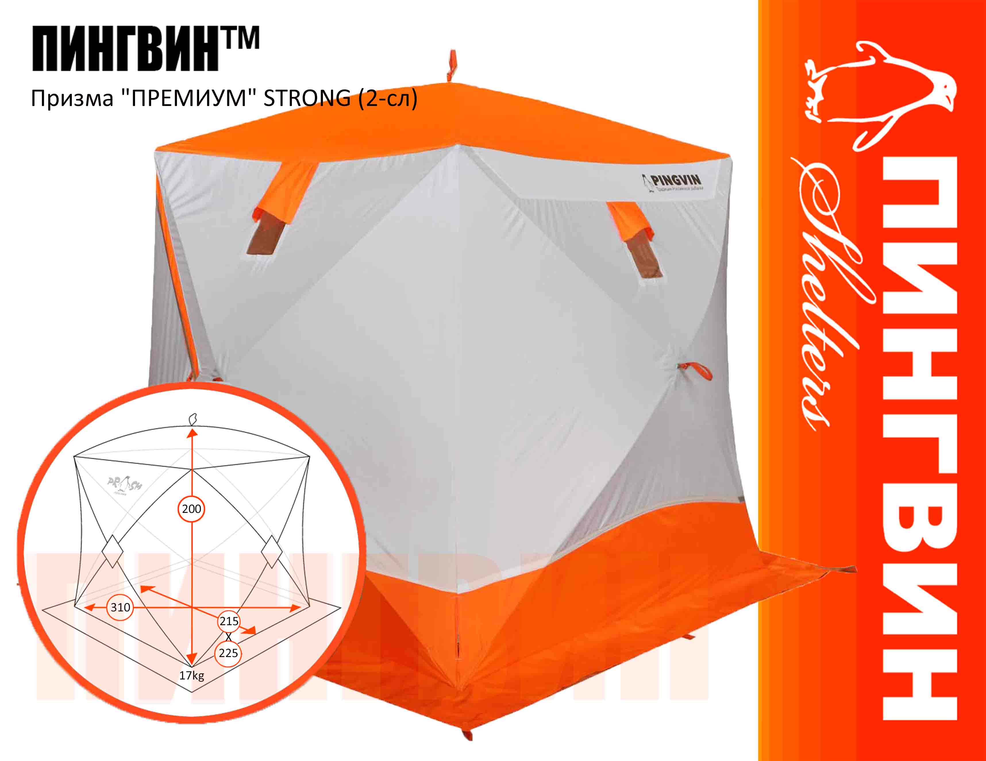 Зимняя палатка Пингвин Призма Премиум Strong (2-сл) 225х215 (бело-оранжевый)