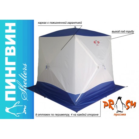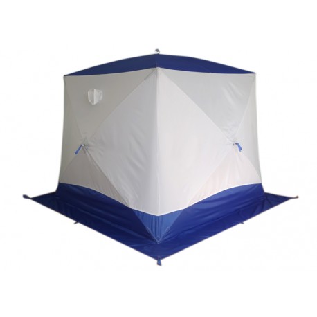 4.Закрепить укрытие на все имеющиеся растяжки на льду и присыпать пороги тента снегом.