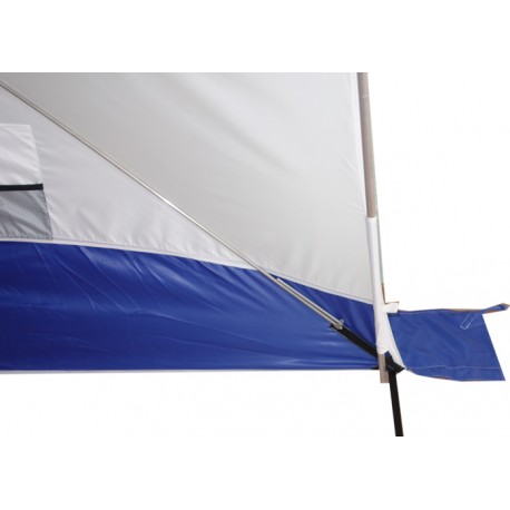5. Закрепить укрытие на все имеющиеся растяжки на льду и присыпать пороги тента снегом. Застежка-молния должна закрываться и открываться без усилий. Если этого сделать не удаётся, то необходимо: