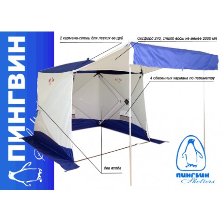 Всесезонная палатка Призма Шелтерс Премиум (1-сл.) имеет форму куба, что позволяет рыбакам рационально использовать пространство. Сверлить лунки теперь можно прямо в установленной палатке. Габариты ПРИЗМЫ позволяют делать это без каких-либо неудобств. В отличие от классических палаток ПИНГВИН™, палатка ПРИЗМА более ветроустойчива. Благодаря своей конструкции палатка выдерживает порывистый ветер. Легко ставится одним человеком в любую погоду. Тент выполнен из ткани Оксфорд 240, которая выдерживает столб воды не менее 2000 мл. Также Шелтерс можно использовать как зимой, так и летом. За 30 секунд, путем открытия двух молний, одна сторона палатки поднимается и становится крышей. Палатка превращается в укрытие для летней рыбалки ШЕЛТЕРС. Установив палатку на берегу водоема, вы находитесь в укрытии и в то же время имеете открытый доступ к воде и абсолютно свободно работаете со снастями. В то же время вещи, прикормка, насадка, снасти - всё находится рядом в укрытии.