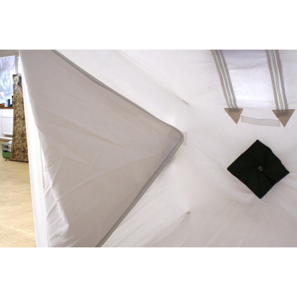 Палатка выполнена в светлых тонах. Благодаря этому в ночное время внутри сохраняется относительно неплохая видимость. Снаружи предусмотрены светоотражающие полосы. Это повышает безопасность рыбака на льду в ночное время
