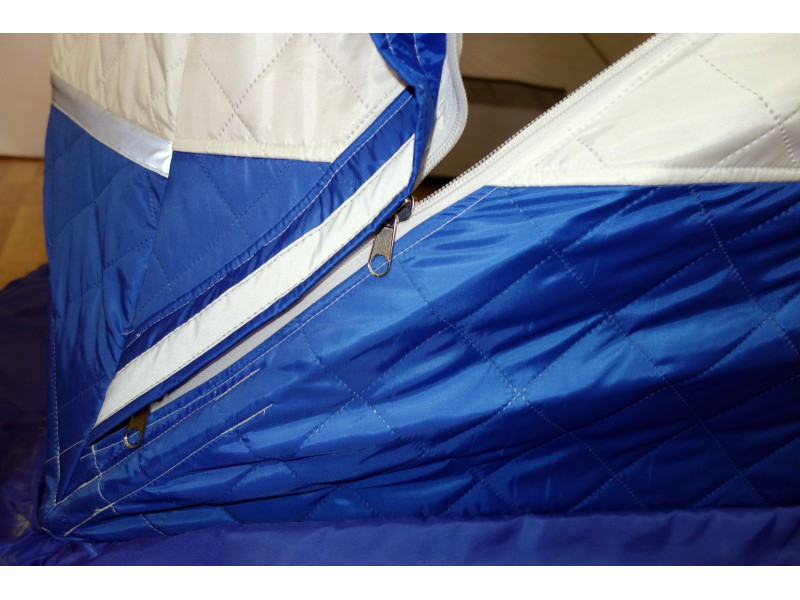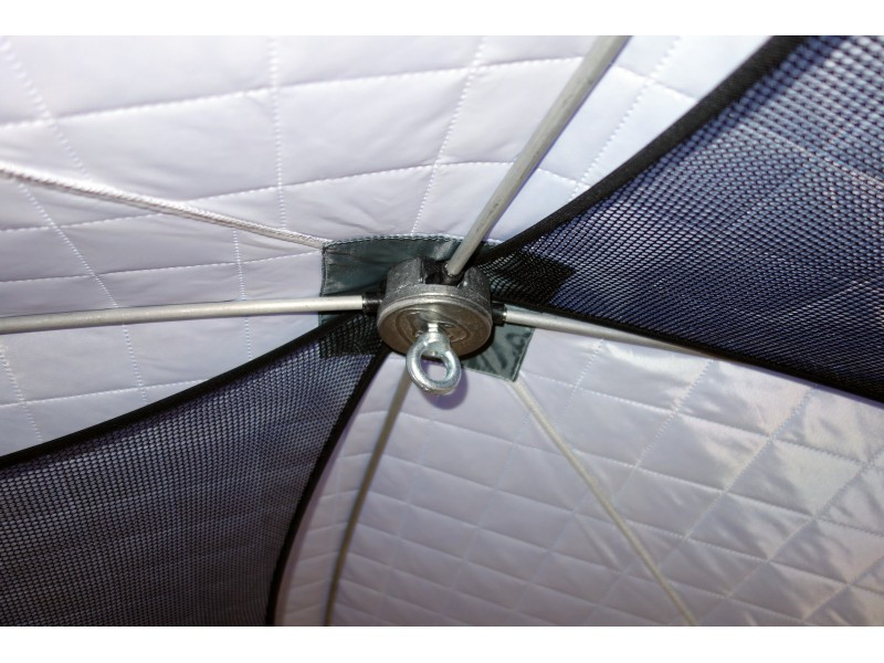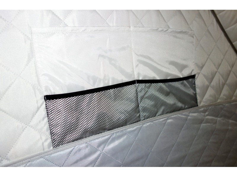 Удобный фирменный чехол позволяет свободно уложить после рыбалки даже обмерзшее укрытие!Обратите внимание, что тент не обладает дышащими свойствами. Для циркуляции воздуха внутри палатки рекомендуем использовать форточки или бегунок на входной двери. Также мы рекомендуем укрепить данную палатку растяжками, независимо от наличия ветра.